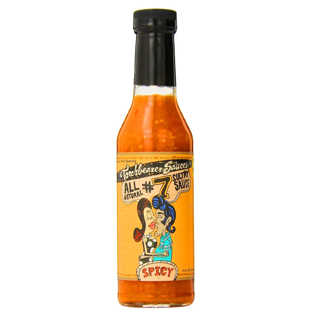Sauce piquante All Natural Sultry #7 de chez Torchbearer utilise son piment préféré, le piment Habanero. Il est cuisiné chaud et révèle les saveurs de la carotte et de la mandarine. La sauce All Natural Sultry #7 obtient un score de 60 000 sur l’échelle de Scoville, c’est donc une vraie sauce piquante mais dont la chaleur est maîtrisée et qui peut donc être utilisée en cuisine quotidiennement.