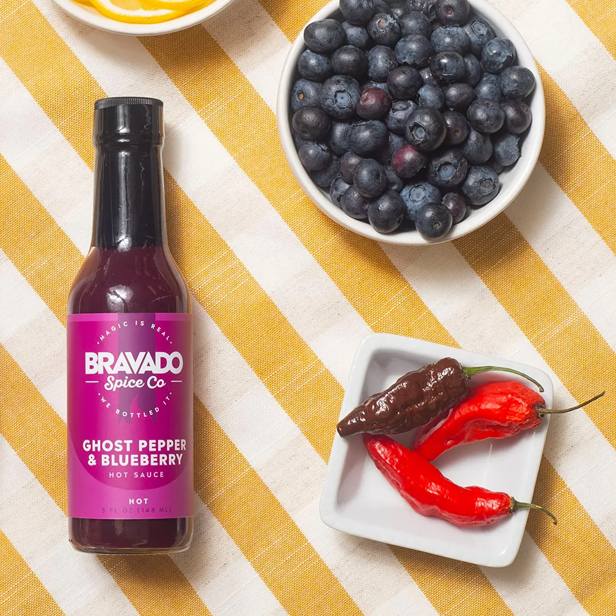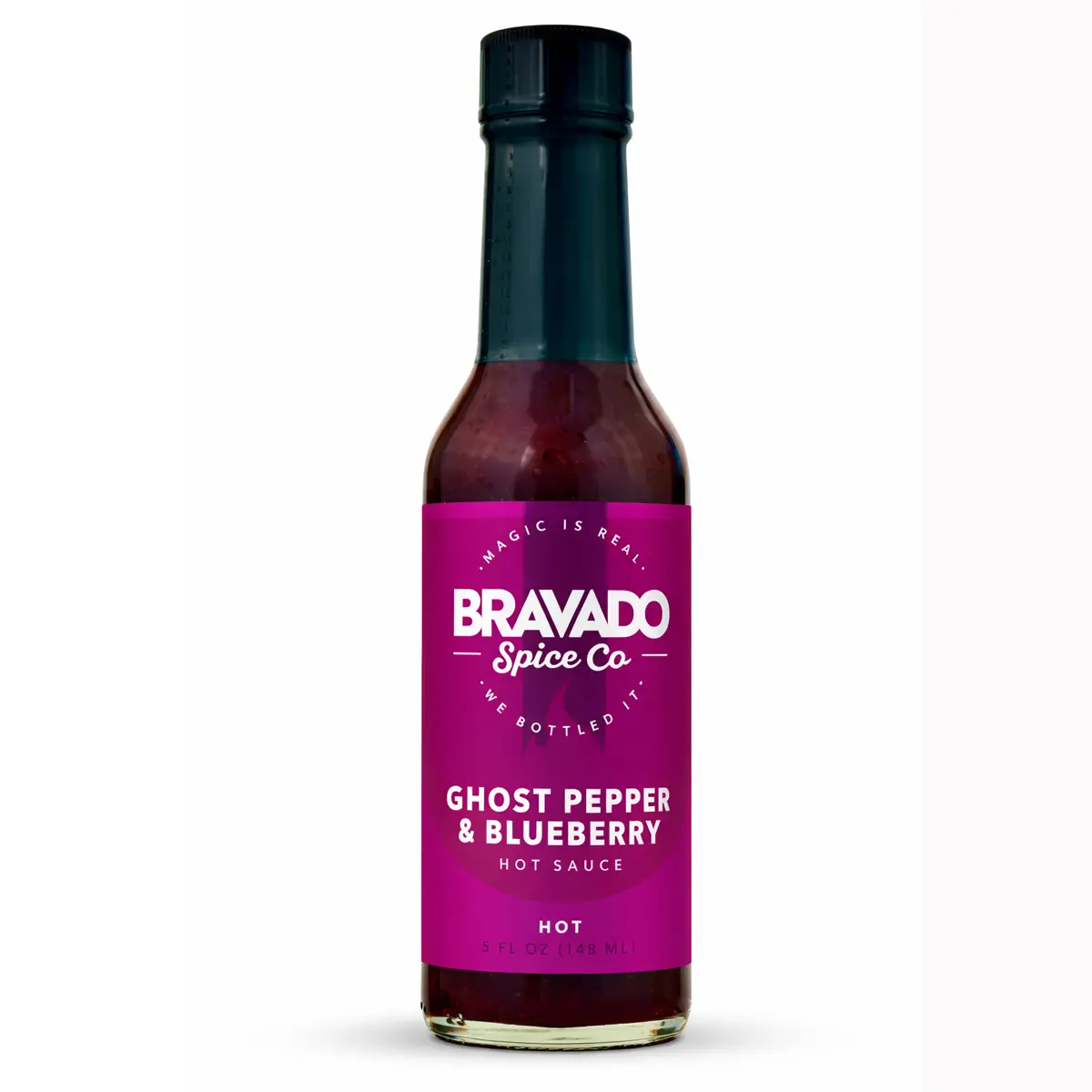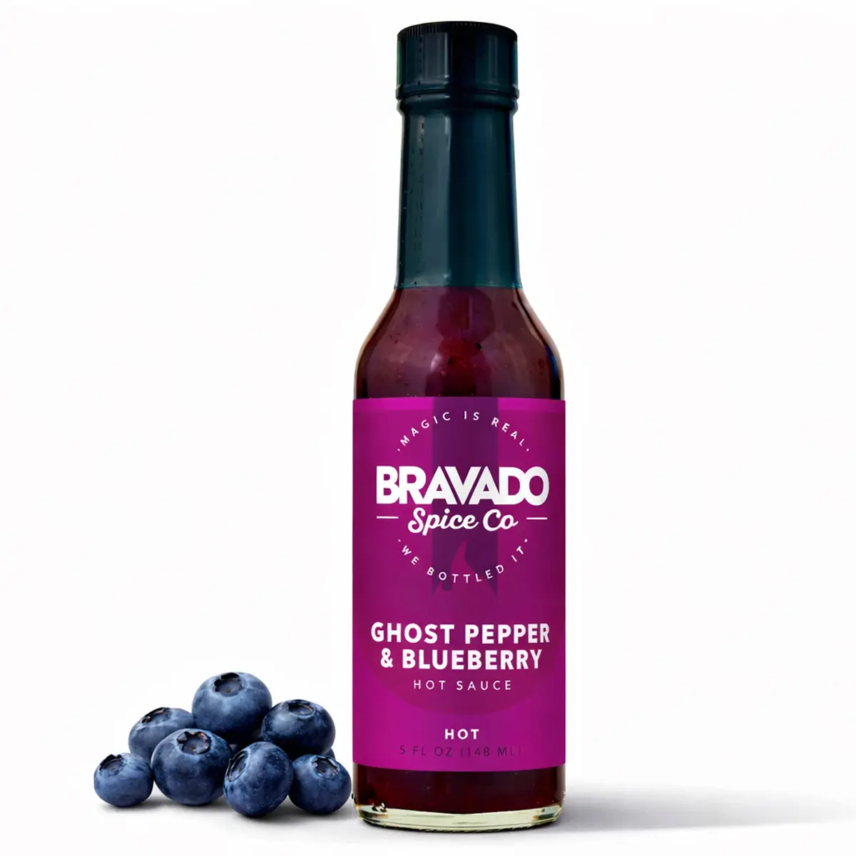 La sauce piquante à la myrtille officielle de l’émission Hot Ones la Bravado Ghost Pepper & Blueberry offre une expérience unique où la puissance du Bhut Jolokia rencontre une intensité fruitée profonde et naturelle. Une création premium à la fois audacieuse et équilibrée, qui révèle toute la richesse de la myrtille et de la framboise sans jamais tomber dans le sucré.