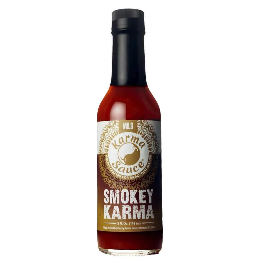 La Karma Smokey Karma est une sauce barbecue douce et fumée, mariant piment chipotle, miel et courge pour un équilibre parfait entre feu et douceur.