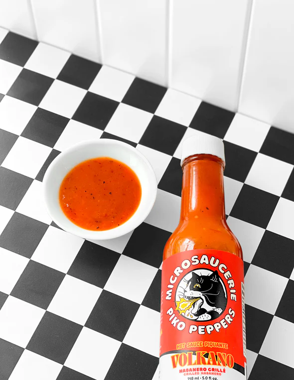 La sauce Volkano Piko Peppers est une sauce piquante canadienne (Montréal) artisanale à base de piments habanero grillés, citron frais et ail. Véritable explosion de saveurs, elle allie chaleur progressive, profondeur aromatique et mise sur un équilibre parfait avec un piquant jamais écrasant.